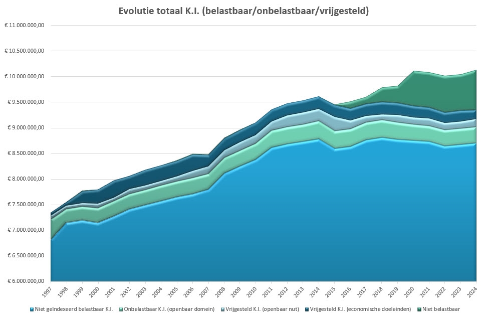 • Wordt positief beïnvloed door het aantal woningen in de gemeente: bij nieuwe verkavelingen worden gronden met een laag KI omgezet naar bebouwde percelen met een hoger KI (die dienen als belastbare grondslag). Ook de aanleg van nieuwe industrieterreinen of zones voor ambachten hebben hetzelfde effect.