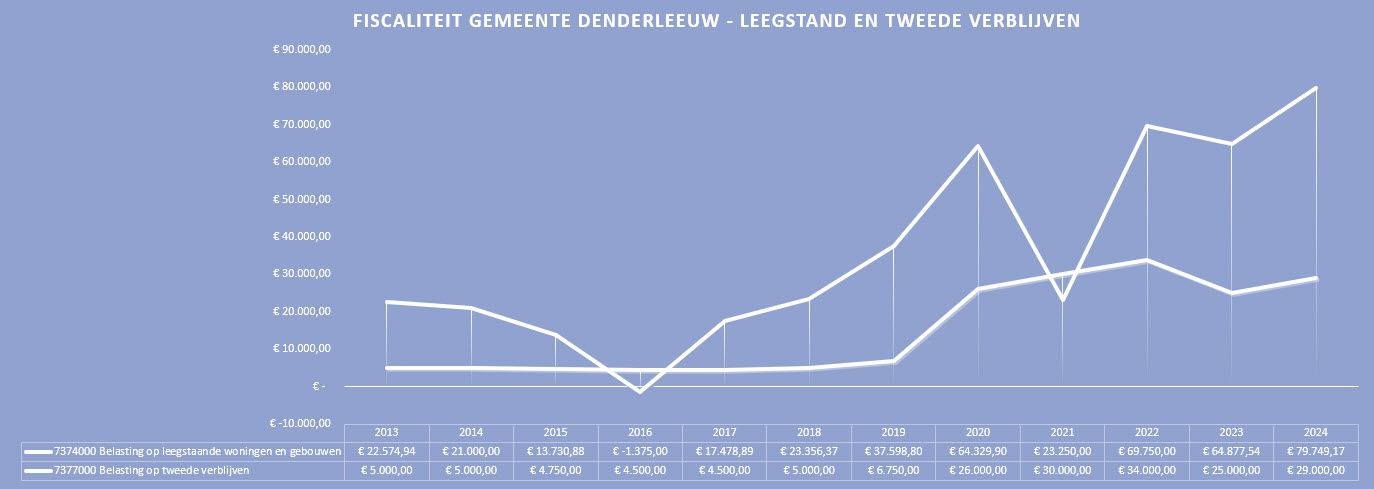 Op basis hiervan werd vastgesteld dat de vertraging van de opbrengsten van de jongste jaren hoofdzakelijk toe te wijzen is aan het beleid van de Vlaamse Regering op vlak van het vrijstellen van OV voor investeringen in nieuw materiaal en outillage (bij een groot bedrijf op het grondgebied van Denderleeuw).