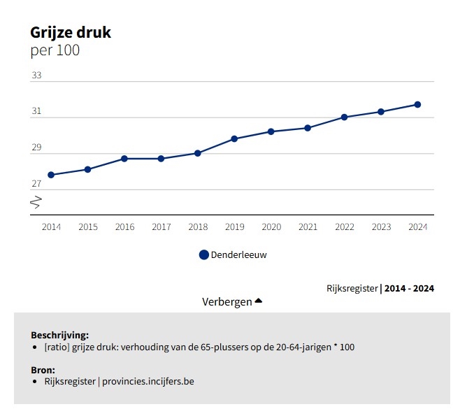 Uit recente cijfers blijkt dat de meeste Vlaamse gemeenten geconfronteerd zullen worden met zowel een vergroening en tegelijk een vergrijzing van de bevolking. Dit betekent dat het aandeel van jongeren en ouderen zal toenemen, in vergelijking met het aantal inwoners die tot de middengroep behoren (actieve bevolking).