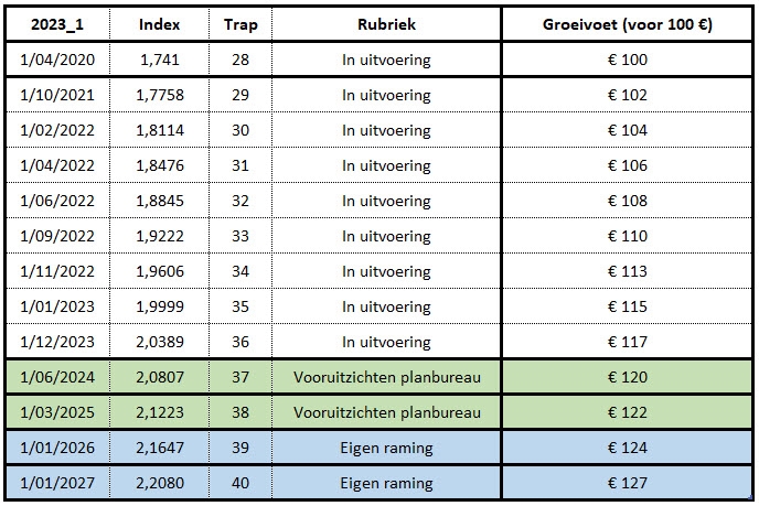 Om de personeelskost op langere termijn (2024-2025-2026-2027) in te schatten, zijn er een aantal mogelijkheden :