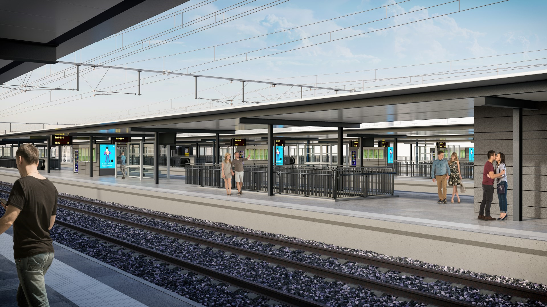 - Daarnaast worden de perrons uitgerust met nieuwe, lange luifels, zitbanken en schuilhuisjes.