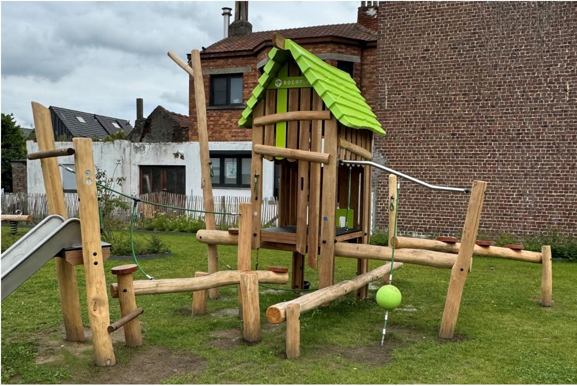 Het ontwikkelen van extra open ruimte middenin de dichtbebouwde kern van de wijk Leeuwbrug, is onderdeel van het wijkverbeteringstraject Leeuwbrug Beweegt. Met middelen van Platteland Oost-Vlaanderen konden speeltoestellen worden aangekocht en werden picknick- en rustbanken voorzien, maar ook groenbeleving. Deze ontmoetingsplek is dan ook gericht op jong en oud.