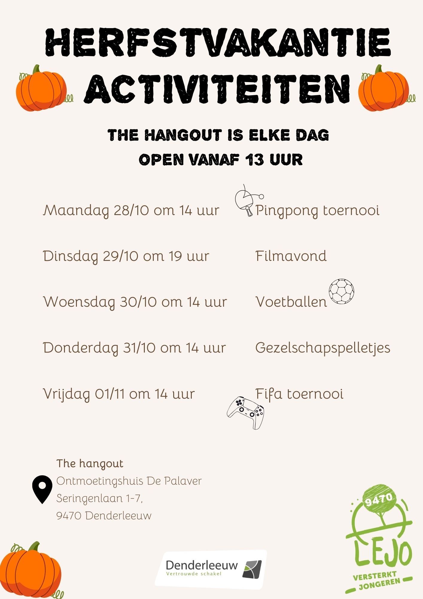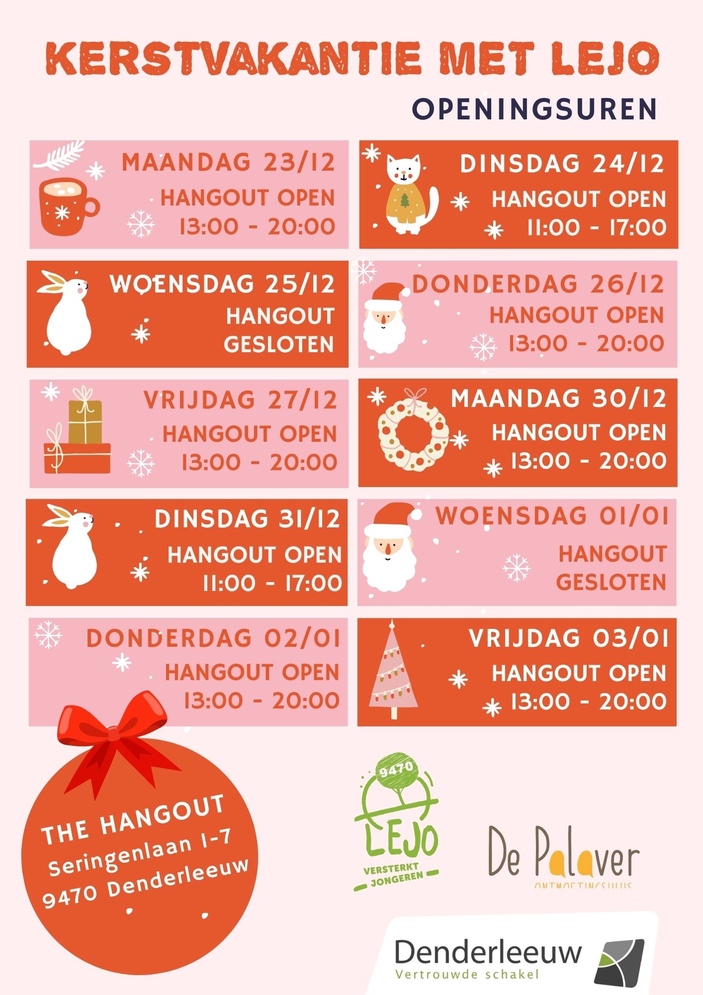 In september 2024 werden voorbereidingen getroffen voor het openen van de Hangout: inrichting, openingsuren, samenwerking met de tijdelijke externe partner Habbekrats (via plan Samenleven tot eind september 2025) en met de werking van de Palaver. Vanaf oktober werd er een wekelijks aanbod gestart in de Hangout. De Hangout is geopend op woensdag en vrijdag van 16 tot 20 uur.