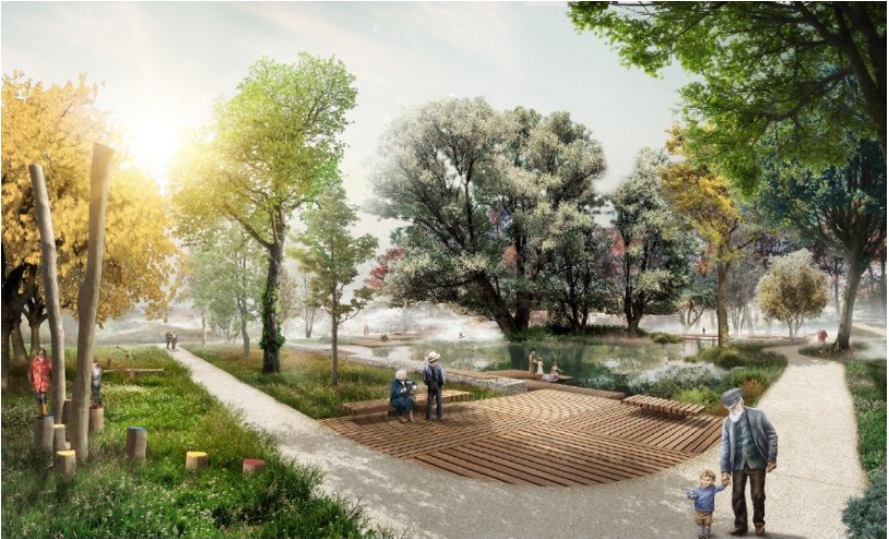 - In de parkzone zal een verwevingsgebied van recreatie en natuur worden voorzien.
